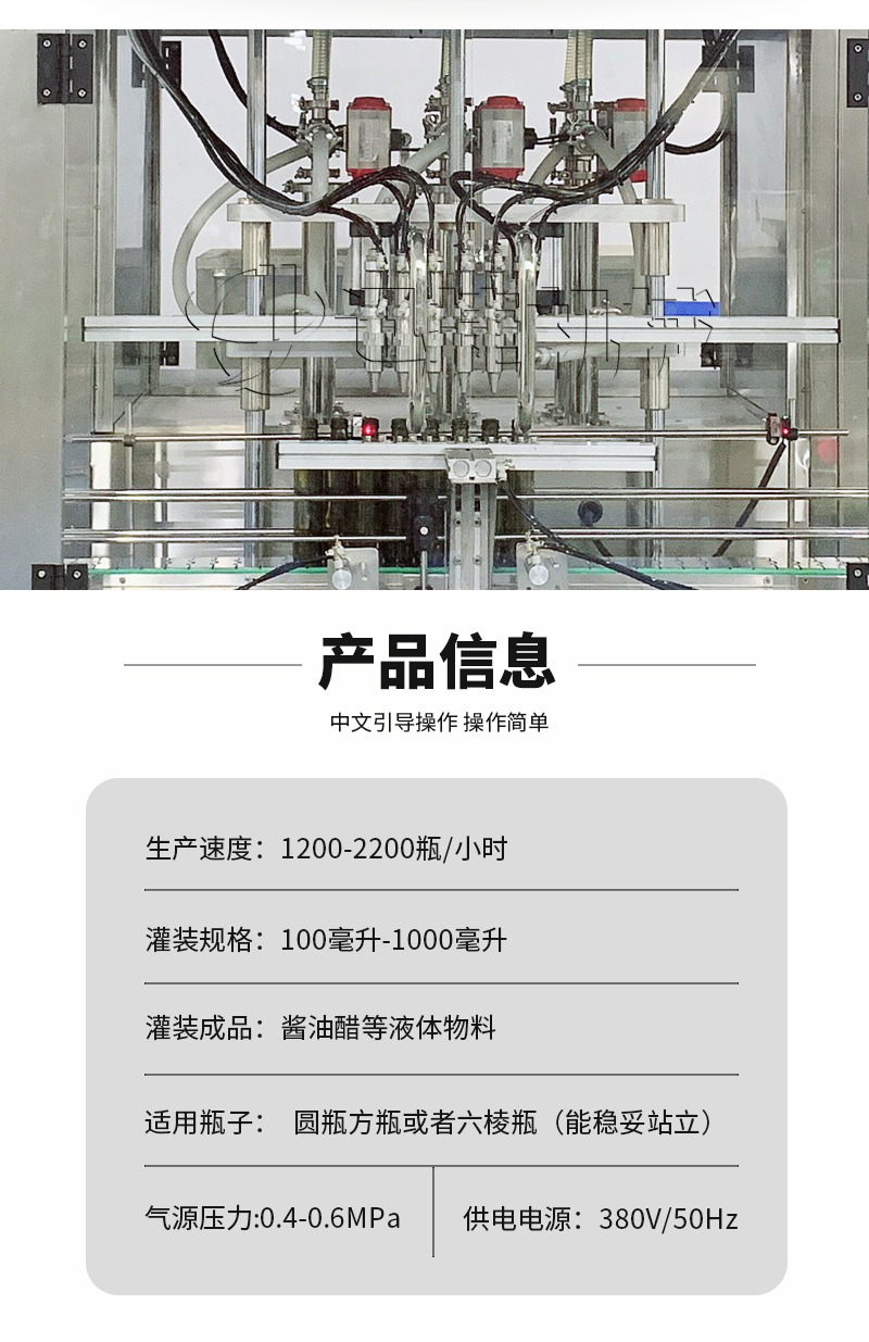 该系列果醋灌装机采用伺服柱塞式计量灌装原理,多项专利认证,适用于各种规格(0.1-1升可兼顾到2升灌装)的液体灌装。