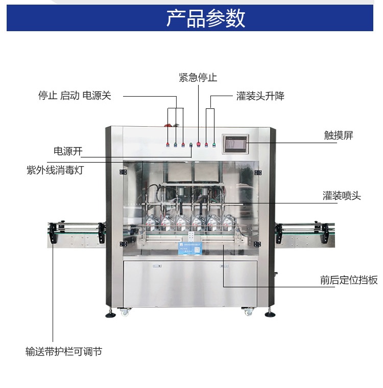 该六头柱塞式全自动润滑油灌装机独特的灌装头设计及真空回吸系统,确保灌装过程无残油滴漏,快慢双速灌装,灌装速度可调,杜绝溢瓶现象。