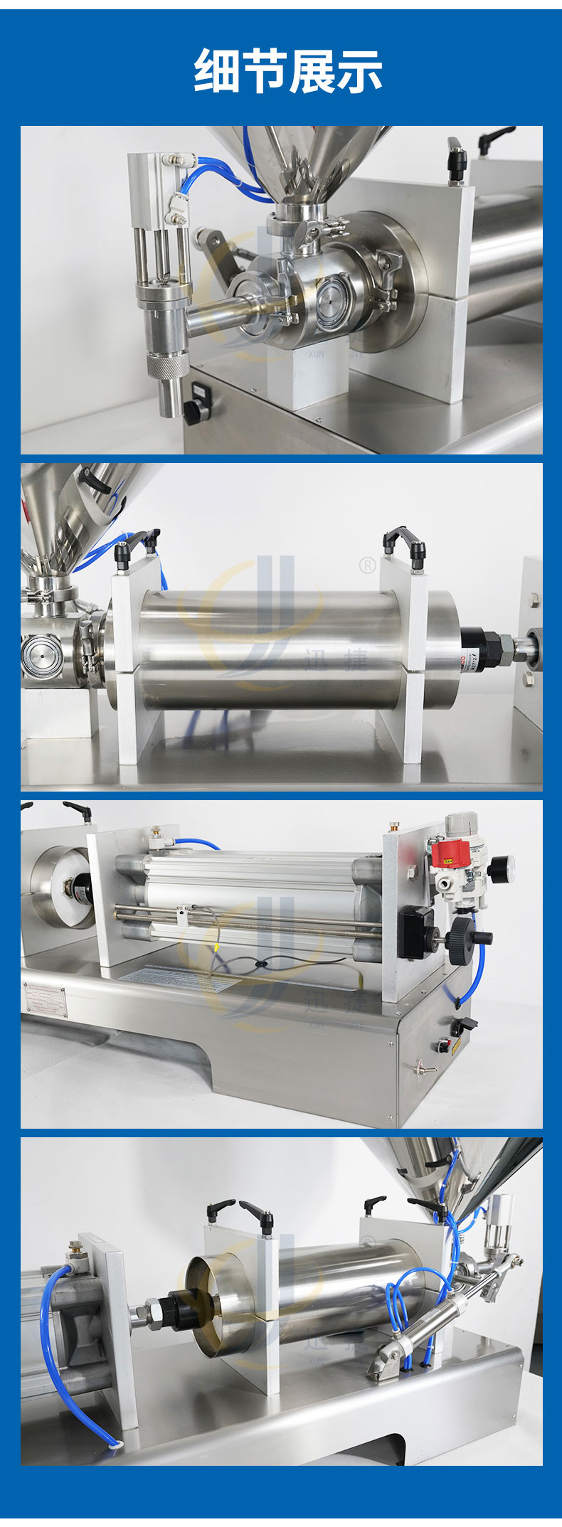 该机为半自动膏体灌装机,是日化行业、医药行业、食品行业、油墨行业和涂料行业的理想灌装充填设备,灌装闷头采用防滴漏。
